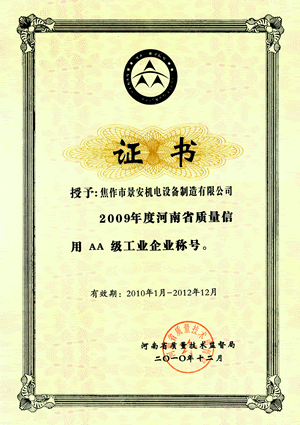質(zhì)量AA證書-中
