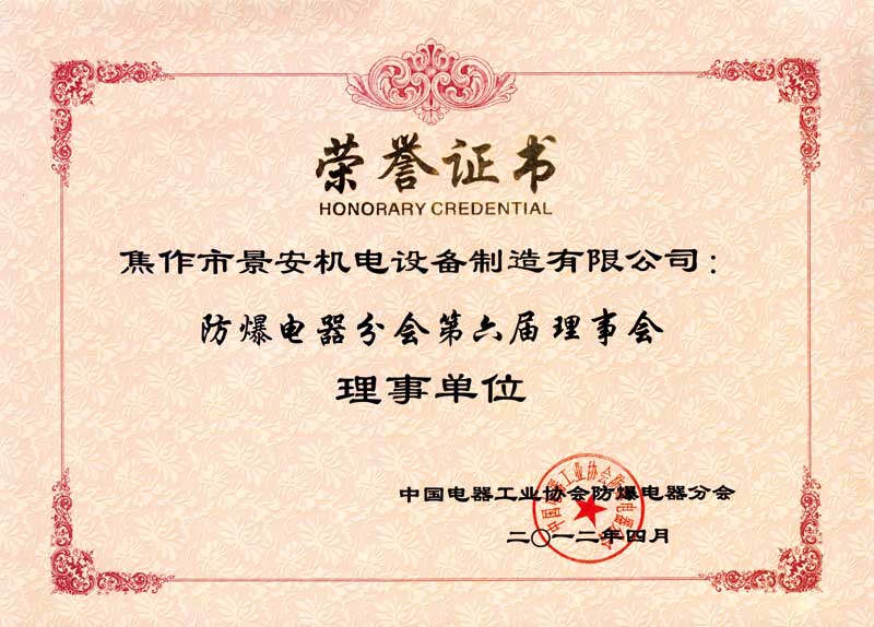 防爆電器分會(huì)理事單位證書